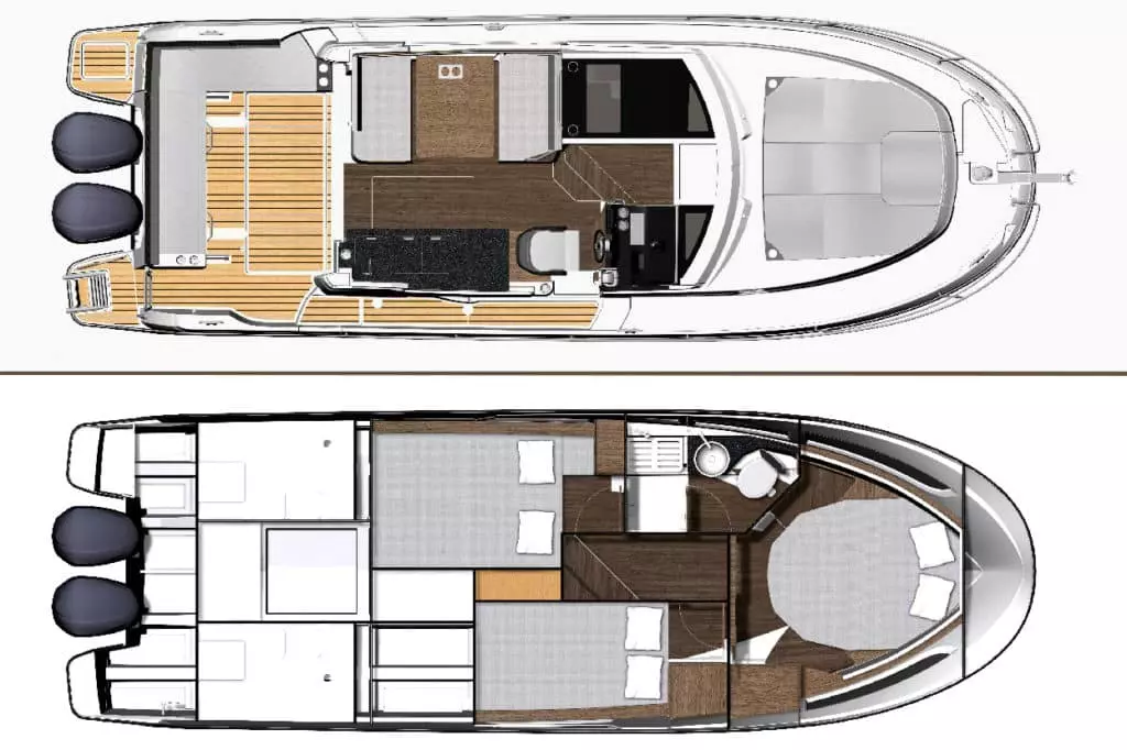 Not only be a Father’s ideal fishing boat and Mother’s comfortable beach house, Merry Fisher 1095 Fly is also the place to make early discoveries about the vast ocean for the Children. This boat has 3 bedrooms, 1 bathroom, 1 kitchen and common living area, fully meeting the needs of a family trip, even enough space for a trip with 3 generations; grandparents, parents, children.